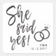She Said Yes! | Engagement Party Script Lettering Square Sticker