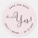 Seal your envelopes with style. Stylish "she said yes" script is in handwritten font encircled with your personal information. Customize this sticker to make it your own and as you can change background colour and fonts.