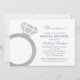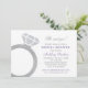 A sparkling bridal shower invitation featuring a large silver glitter engagement ring graphic with "She said yes!" in lavender calligraphy script. The playful yet elegant design captures the excitement of the engagement with a glamourous shimmer. The lavender envelope backing coordinates beautifully. All text is fully editable for your wedding shower event.