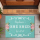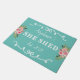 She Shed Floral Year Established Cute Teal Doormat. Personalize this custom design with your own name.