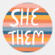 SHE/THEM Pronouns Stripes Handlettering Sheet of Classic Round Sticker