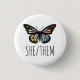 SHE/THEM Pronouns Watercolor Butterfly 1 Inch Round Button