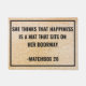 She thinks that happiness is a mat that sits on her doorway