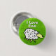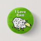 Funny I love you badge. Cartoon style Sheep against a grass background, with the message "I Love Ewe". A play on words.