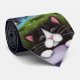Show everyone why you put the 'gentle' in gentlemen with this cutesy, dreaming kitty tie. Features a fantasy cat painting of a sleeping tuxedo cat, and 2 mice, counting sheep as they jump over a grassy hill. Original painting © Lisa Marie Robinson. All Rights Reserved.