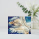 Sheep in astronaut suit floating in space holiday postcard