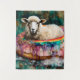 Sheep on a Rainbow Colour Floating Doughnut Tapestry