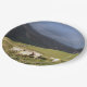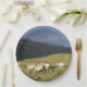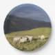 A photographic design of Welsh mountain sheep grazing on the sunny hillside just as the rain is about to start.