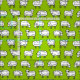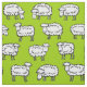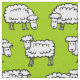 A repeating pattern made up of little cartoon sheep some looking alert and others eating grass.