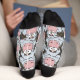 Sheep icons. Seamless pattern. Custom background colour. Custom top stripe colour. Custom text on each sock.