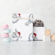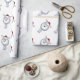 Cartoon sheep wearing a Santa hat on Christmas wrapping paper.