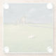 Glass photo coaster with some sheep in the green grass in front of three windmills under a dark sky with rain clouds just before a spring storm in a landscape in Leidschendam, the Netherlands.
