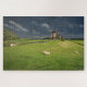 Sheep with windmills under dark clouds jigsaw puzzle