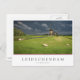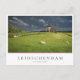 Photo postcard of some sheep in the green grass in front of three windmills under a dark sky with rain clouds just before a spring storm in a landscape in Leidschendam, the Netherlands with a white edge and in a white box the text 'Leidschendam, Netherlands'. The box has stripes in red, white and blue, the colours of the dutch flag.