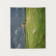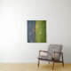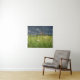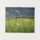 Photo wall tapestry with some sheep in the green grass in front of three windmills under a dark sky with rain clouds just before a spring storm in a landscape in Leidschendam, the Netherlands.