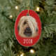 Keepsake ornament features a charming illustration of a sheepdog on festive red background. Customize with year or other special text