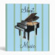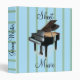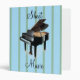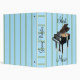 A fun way to keep all that sheet muic oraganized that is spread everywhere. This binder has light blue stripes along front, back, and spine. The front features a baby grande piano and the words sheet music. On the spine you can put your name. All text is customizable so you can change the words, font, colour, or remove them completely.
