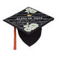 This elegant graduation cap topper features a black background with a graduation cap in faux gold, a sheet music and roses in light blue grey. Personalize it for your needs. You can find matching products at my store.