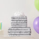Black sheet music on speckled paper background