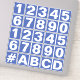 Numbers from 0 to 9. Individual numbers as stickers on a sheet. Blue and white.