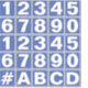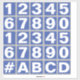 Numbers from 0 to 9. Individual numbers as stickers on a sheet. Blue and white.