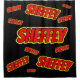 Super special Sheffey fonts in red and yellow on a bold black background. Fantastic personalized shower curtain for or from anyone with the name of Sheffey.