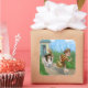 This adorable art of a boy and his dog running comes from the picture book Sheldon the Sheltie's Tasty Adventure. This sunny summer scene shares the exuberance of a boy and his dog's friendship and their adventure racing to the garden for some tasty delights. Perfect for dog lovers of all ages.