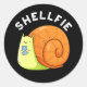 Shellfie Funny Snail Selfie Pun Dark BG Classic Round Sticker
