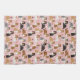 Cute Shetland Sheepdog dogs sit and stand and rollover with sable, tri-colour, merle and white coats with scattered dog bones and pawprints pattern.