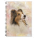 Beautiful sable Sheltie or Shetland Sheepdog face on a pastel painting like background dog lovers spiral notebook