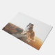 Shetland Sheepdog peering our from a cliff as the sunsets behind him. Showing all the beauty of this gorgeous dog. The Dog is brown black and White. He looks soft and fluffy, at the same time as powerful, majestic and bold.
