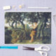 This design features a painting by the Polish artist Henryk Siemiradzki (1843–1902), who spent most of his working life in Rome, the capital city of Italy. It depicts a young shepherd who is leaning against a tree as he plays a flute-like musical instrument. The scene is intended to conjure up images of ancient Greece or Rome. The boy is barefoot in a natural landscape. He is surrounded by trees, and there are some rocky mountains in the background. The young shepherd appears to be focused completely on the music that he's playing.