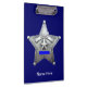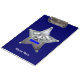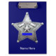 This custom dark blue clipboard is decorated with a Sheriff badge and can be customized with a name.
