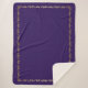 This warm and cozy Sherpa blanket is shown in a rich shade of purple with a gold-coloured scroll print all around the shape of this blanket.
