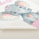 Couverture bébé éléphant avec adorable aquarelle petite fille éléphant sur pois rose et blanc arrière - plan. Vous pouvez personnaliser cette jolie couverture bébé d'éléphant en ajoutant simplement le texte de votre choix dans le style de police que vous préférez.
