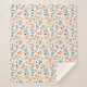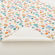 A white blanket with colourful, cute cartoon houses, cars, plants, and floral patterns with pastel colours on a bright background, a print fabric design for babies and children, a clean and fresh style, suitable for a baby gift