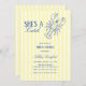 An elegant coastal bridal shower invitation featuring butter yellow stripes and refined blue typography. A charming line art lobster adds a whimsical beach touch, while the mix of modern and vintage typefaces creates a timeless yet fresh design. Perfect for celebrating love with seaside sophistication.