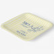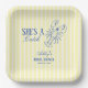 An elegant coastal bridal shower paper plates featuring butter yellow stripes and refined blue typography. A charming line art lobster adds a whimsical beach touch, while the mix of modern and vintage typefaces creates a timeless yet fresh design. Perfect for celebrating love with seaside sophistication.