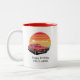 Looking for a fun birthday gift for a classic car lover? This retro coffee mug features the phrase "She's a classic" alongside red and orange sunset colours and a customizable greeting for your personal message and their name. Create your own personalized gifts for special occassions.