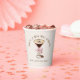 A birthday party design for the ladies, this sophisticated and playful Ivory beige paper cup design features the popular espresso martini theme. The martini is topped with a frothy layer of foam and coffee beans and is tied with a pink chiffon bow. These details add to the vibe of indulgence and celebration and also has a bit of a retro look and feel! Personalize this very special birthday paper cup with your guest of honour's name.