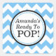 She's Ready to Pop Baby Shower Sticker with chevron design. Customize with the mother-to-be's name! Perfect for baby shower favours, treats, and more.