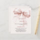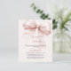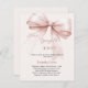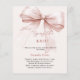 A soft pink background, decorated with rose gold coloured bow. Personalize and add a name and party details.