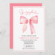 Celebrate the bride-to-be with a modern watercolor blush pink bow ribbon bridal shower invitation that combines elegance and charm. The design creates a feminine ambiance for the event, for a day filled with love, joy, and cherished moments, while the phrase "She's tying the knot" adds a playful element to the card. Use the design tools to customize the text, fonts and colours. Also available as download.