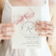The script typography on the invitation flows gracefully, like a handwritten love letter. This elegant yet minimal font captures the essence of modern elegance, adding a personal and intimate touch to the invitation. The text dances across the card, echoing the joy and anticipation of the upcoming celebration.