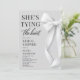 Celebrate the bride-to-be with this She’s Tying The Knot white bow bridal shower invitation, featuring a timeless white ribbon, soft feminine accents, and a clean modern layout. Perfect for elegant gatherings, classic white-themed showers, minimalist celebrations, and sophisticated bridal events. Fully customizable and print-ready for a beautifully polished occasion.