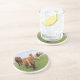 I'm not sure how much moisture these will soak up, haven't had a chance to try them out, but they look good and I like the cork backing. The printing is fine ~ and really looks cool with an artisan's hand made "Hurricane Martini" glass sitting on top of my painting (on the coaster) in my studio.