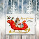 Sur cette carte de vacances, un beau Cheepdog Shetland est assis dans un joli traîneau décoratif rouge et or. À côté du chien se trouve des paquets cadeaux attachés avec des arcs colorés, et derrière le traîneau est saint avec des baies rouges. Le texte en or à droite dit "MERRY CHRISTMAS" et votre texte personnalisé est en vert. Tout le texte, à l'intérieur et à l'extérieur, peut être facilement changé à tout ce que vous voulez. Vous pouvez voir plus d'images et de produits de races de chiens à Dog Village.