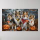 Unleash the spooky spirit with this eerie Halloween design featuring a pack of dogs under a dark, moonlit sky, surrounded by flying bats and glowing pumpkins. Perfect for those who love a touch of frightful fun with their furry friends!