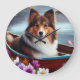Shetland Sheepdog on a Paddle: A Scenic Adventure Large Clock