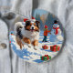 Shetland Sheepdog Running Snow With Christmas Hat 6 Inch Round Button